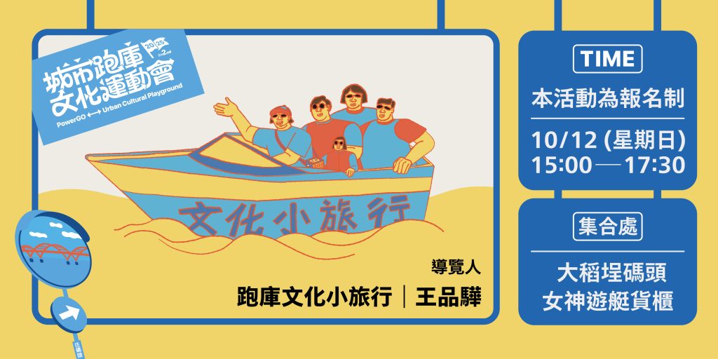 ⟢「跑庫文化小旅行」將從大稻埕碼頭啟航,由策展人王品驊親自導覽,邀請參與者登船出發,感受1995年《淡水河上的風起雲湧》美展於淡水河岸展出的精神,重新體會河流如何塑造城市與生活。⟢